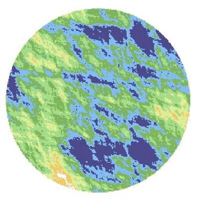 Figure 2. Topographie d’une planète fictive. Le relief tracé par MATHCAD est calculé par le programme APL EXOPLANETE comme la somme de quatre surfaces fractales dont l’une correspond à Df = 2.5 et les trois autres à Df = 2.1.