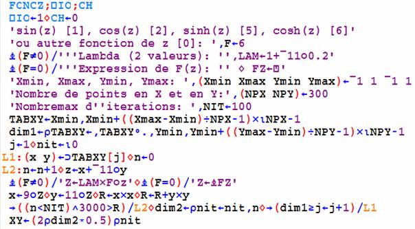 Il est remarquable que des fonctions itératives très simples comme par exemple FONCZ créent des formes extraordinairement compliquées. Cette fonction procède par les étapes suivantes :